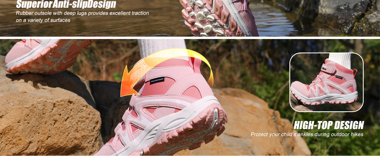 • Protective: Our kids hiking boots are full-cover toe cap design to keep your child's toes safe from falling objects and hard collisions. It builds to withstand any adventure, ensuring long-lasting performance for your little explorers.