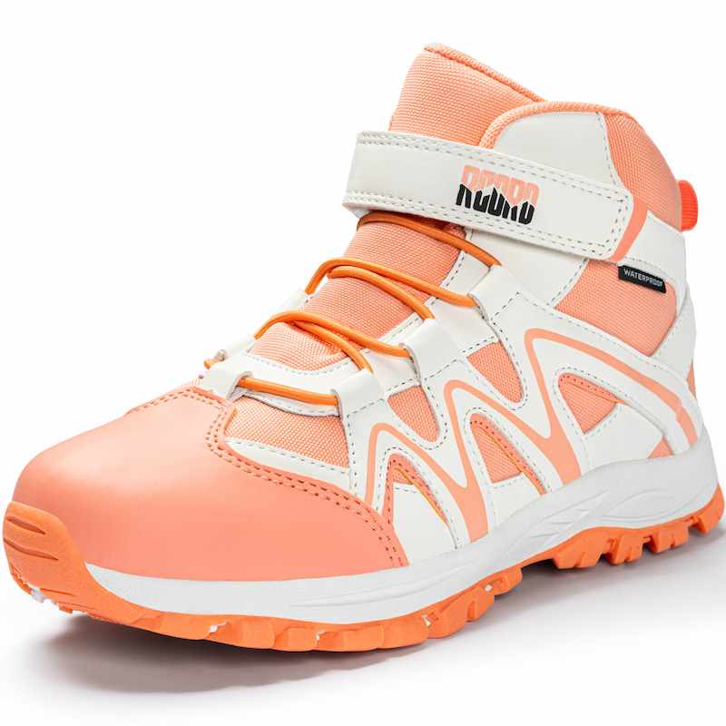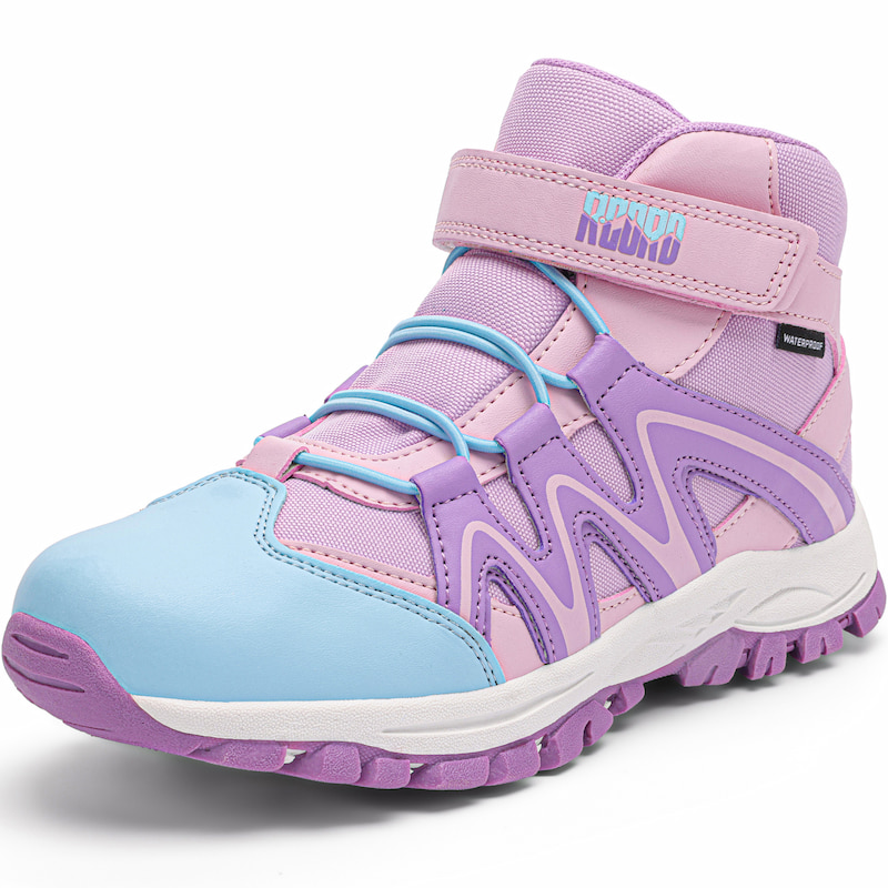 Kids Hiking Boots Waterproof Durable TPR Traction Hook & Loop Closure Elastic Laces For Outdoor