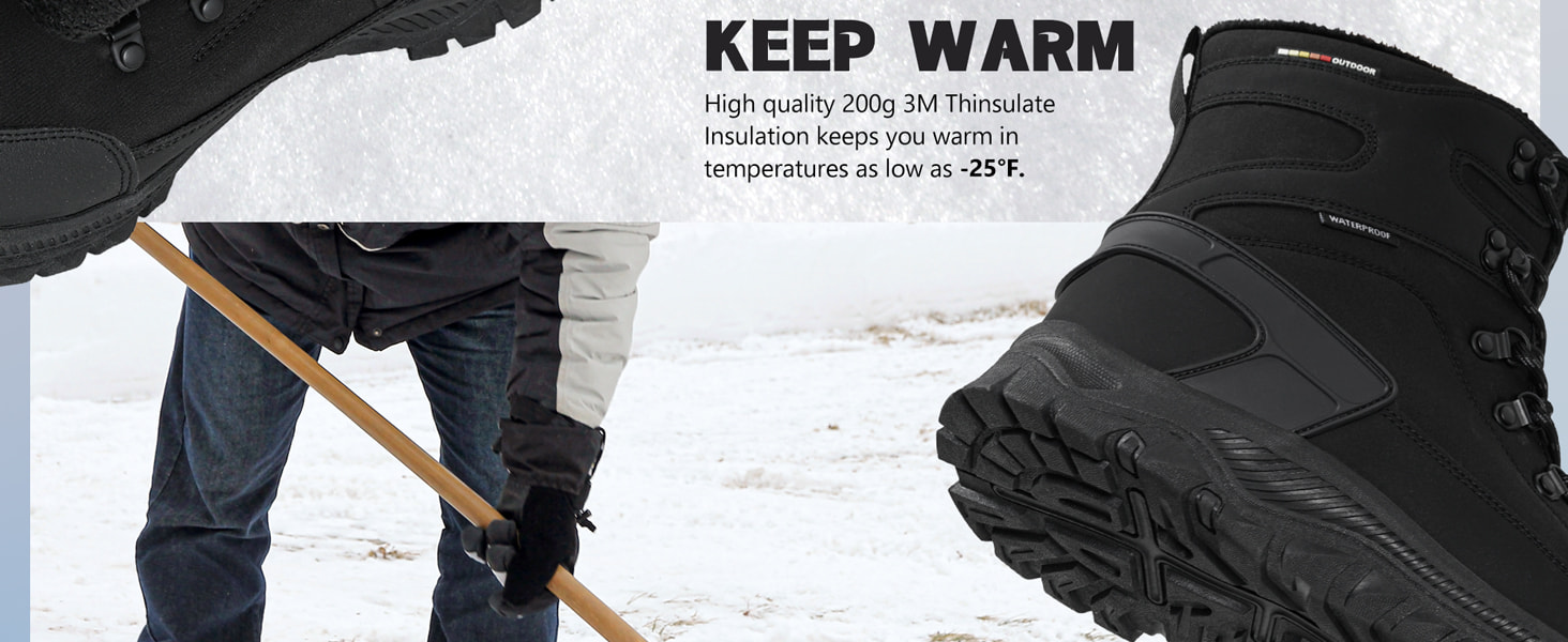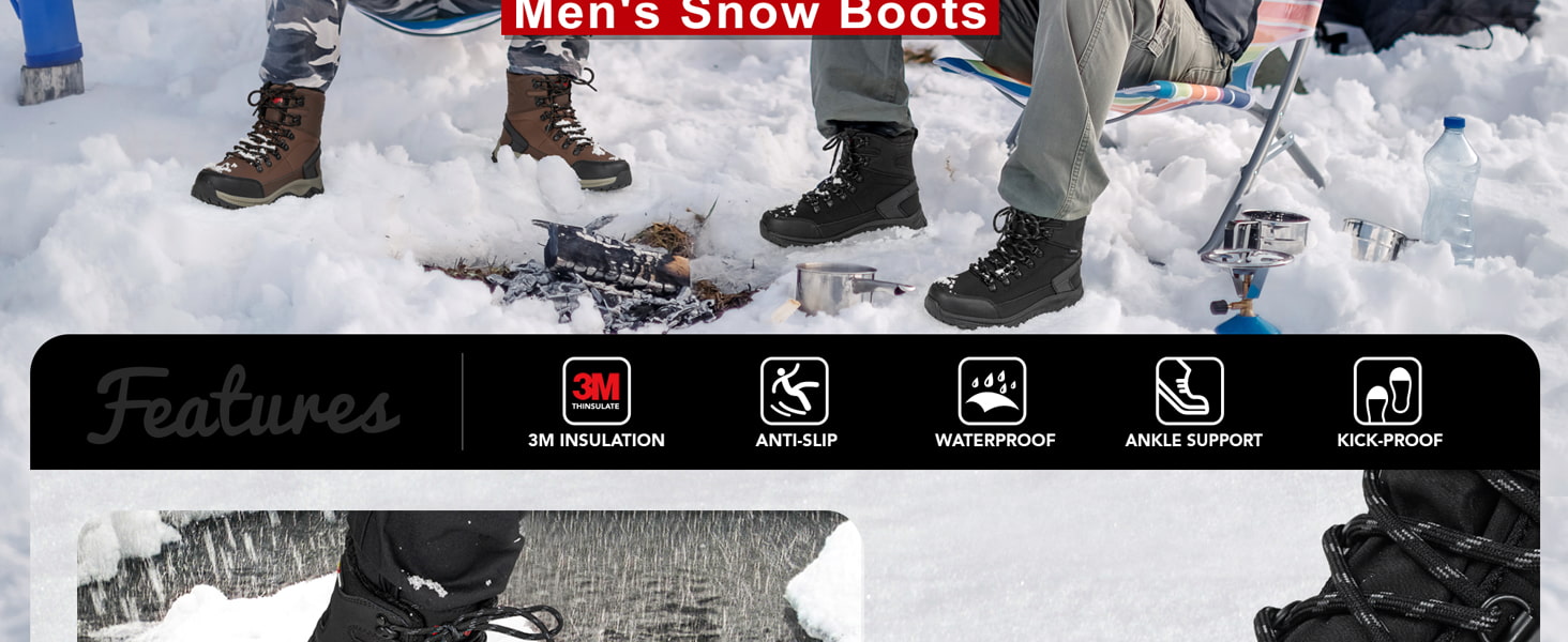 Men's Waterproof Slip-resistant High-top Snow Boots Insulated Warm Durable Lace-up Winter Boots For Outdoors