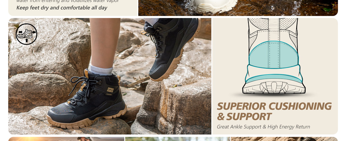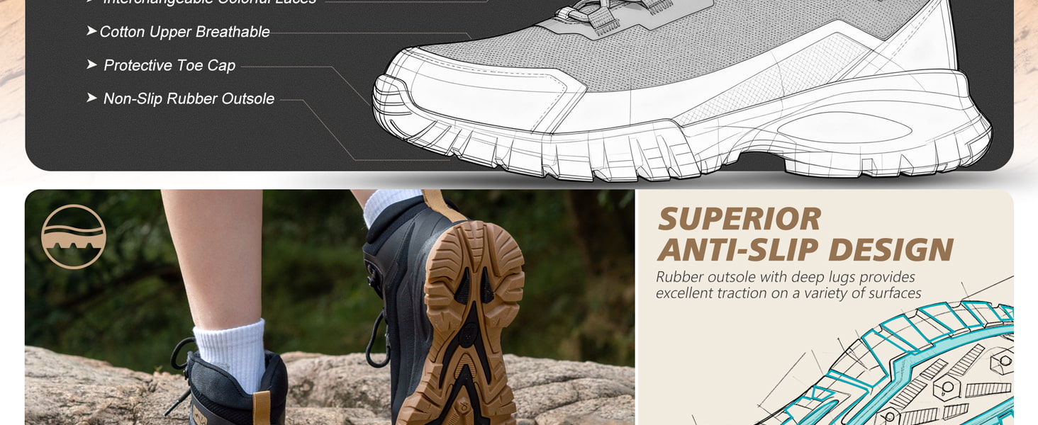 Versatile: Our versatile boots are designed to cater to your needs, whether you're navigating daily life or engaging in outdoor sports like hiking, camping, climbing, cycling, running, backpacking, trekking, mountaineering, traveling, and more. With their unique design and exceptional performance, these boots are perfect for a wide range of activities, making them an ideal choice for all your indoor and outdoor pursuits.